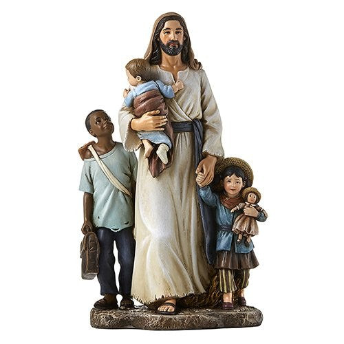 There is a very powerful message in this statue of Jesus and the poor children of the world. We are called to remember and to help those children who are in need and who Christ calls us to action to defend and to care for. Ideal for your classroom, home or office. An ideal gift for any person involved in the betterment of children?s' lives such as school teachers, mental health advisors, legal professionals and all volunteers. Packaged in a gift box.