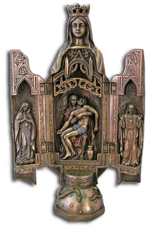 Our Lady of Sorrows Triptych, Bronzed Resin - 11 inch
