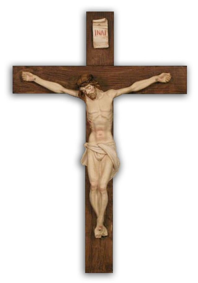 Crucifix in Hand Painted Alabaster - 15 inches - Multi-Color / 15" x 10" is backordered and will ship as soon as it is back in stock.
