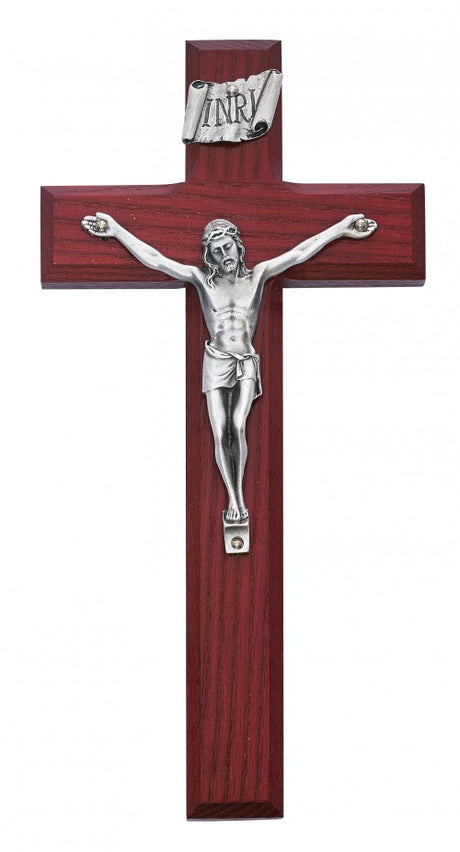 Beveled Cherry Stained Wood Crucifix with Silver-Tone Corpus 8 Inch