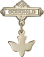 Holy Spirit Charm and Godchild Badge Pin - 14K Solid Gold / 7/8" x 5/8" is backordered and will ship as soon as it is back in stock.