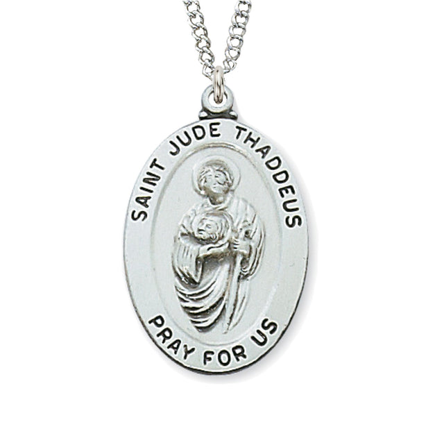 St. Jude Medal Sterling Silver Oval for Boys - Silver / 1" x 5/8" is backordered and will ship as soon as it is back in stock.