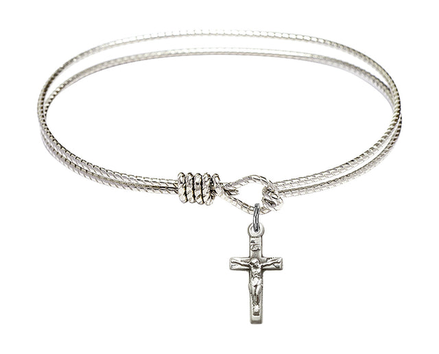 Classic cross with corpus crucifix charm is paired with a pretty cable bangle bracelet.