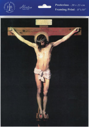 This reproduction of the Crucifixion Print by Diego Velazquez is made in Italy and printed in Milan by Fratelli Bonella. Each pack includes three prints. Excellent quality paper.
