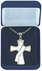 This Deacon's Cross pendant is made of sterling silver and measures 1-1/2' wide x 2' long. The pendant comes with a 28' Rhodium plated chain and is gift boxed.