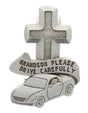 Grandson Please Drive Carefully Visor Clip, Pewter - 2 1/2'H