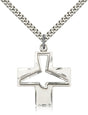 This abstract pendant displays a modern twist featuring the symbol of the Holy Spirit, the downward dove, overlaying a thick cross. The Holy Spirit will keep you mindful of wisdom, understanding, counsel, fortitude, knowledge, piety and fear of the Lord