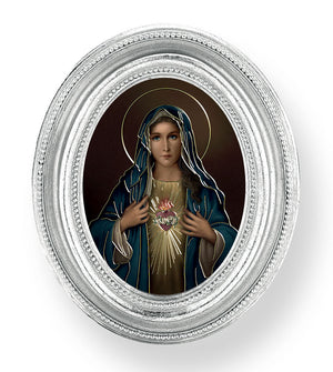 Immaculate Heart of Mary Small 4.5 Inch Oval Framed Print - Silver / 3.75" W x 4.5" H is backordered and will ship as soon as it is back in stock.