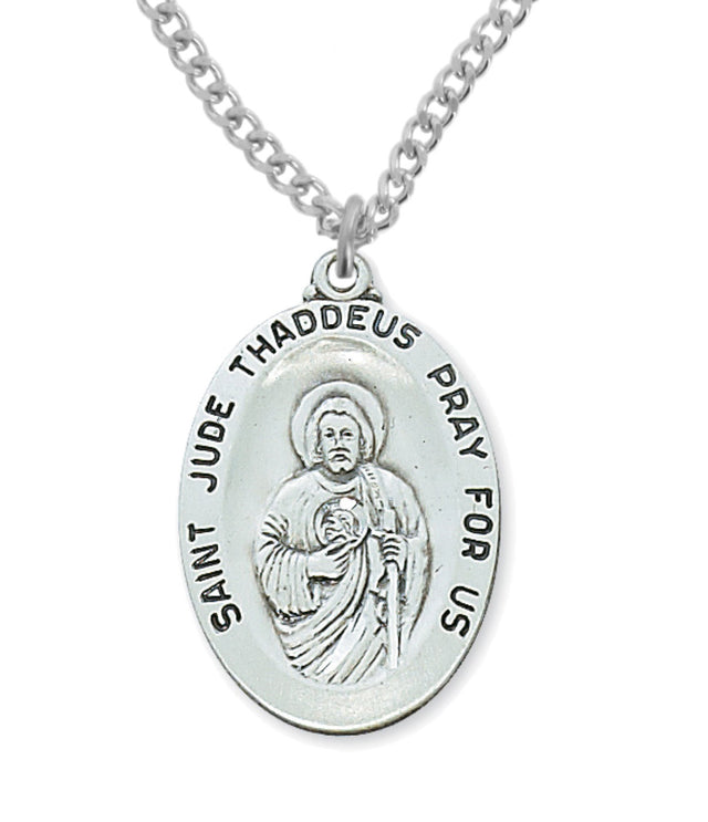Wide Oval St. Jude Medal Sterling Silver for Men - Silver / 1 1/8" x 3/4" is backordered and will ship as soon as it is back in stock.