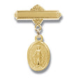 This beautiful baby pin with dangling Miraculous medal and crossbar top.