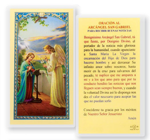 Oracion Al Santo Angel Gabriel Laminated Spanish Prayer Card