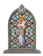 Elegant glass work is combined with a high-quality metal frame to produce a Catholic devotional that will lighten up any room!