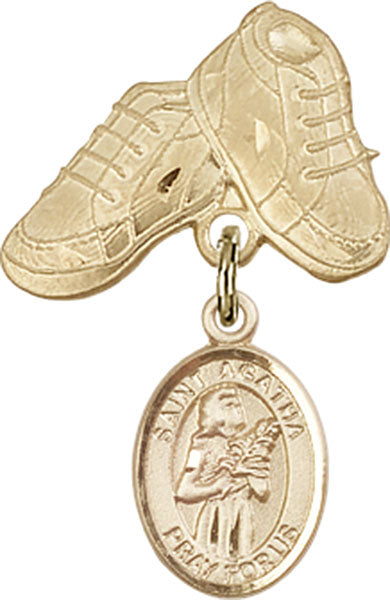St. Agatha Charm and Baby Boots Pin - 14K Solid Gold / 1" x 5/8" is backordered and will ship as soon as it is back in stock.