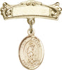 St. Lazarus Charm and Arched Polished Engravable Badge Pin - 14K Solid Gold / 7/8" x 3/4" is backordered and will ship as soon as it is back in stock.
