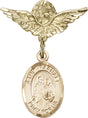 St. Raphael the Archangel Charm and Angel with Smaller Wings Badge Pin - 14K Solid Gold / 1" x 3/4" is backordered and will ship as soon as it is back in stock.
