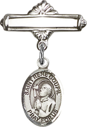 St. Rene Goupil Charm and Polished Engravable Badge Pin