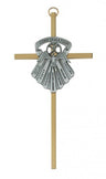 This brass confirmation wall cross features a gold-tone 6" brass cross and a beautiful silver-ton Seven Gifts of the Spirit centerpiece. The centerpiece is designed with a banner at the top with the word "CONFIRMATION". The Chi Rho symbol is found in a circular shape and just below is an ascending dove where the seven gifts of the Holy Spirit are displayed. The seven gifts of the Holy Spirit are Fear of the Lord, Piety, Counsel, Understanding, Knowledge, Wisdom and Fortitude.