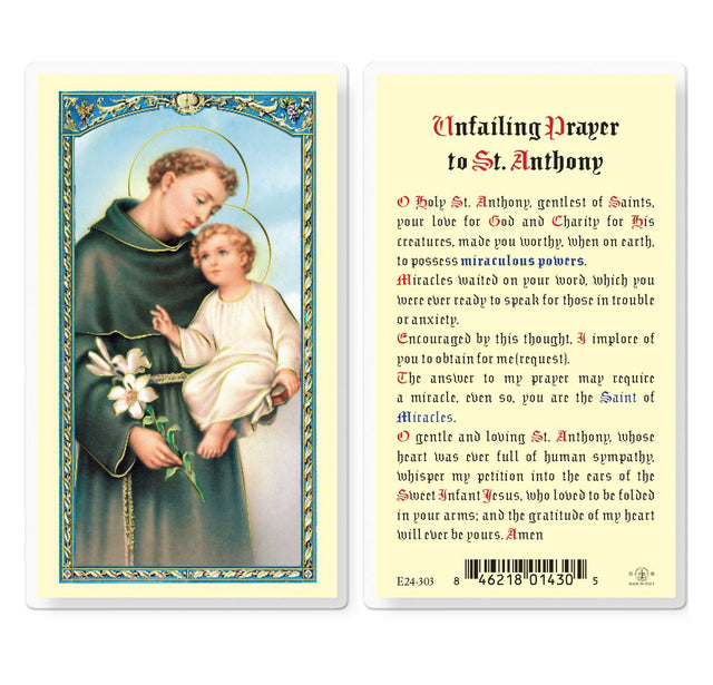 St. Anthony, Unfailing Laminated Prayer Card