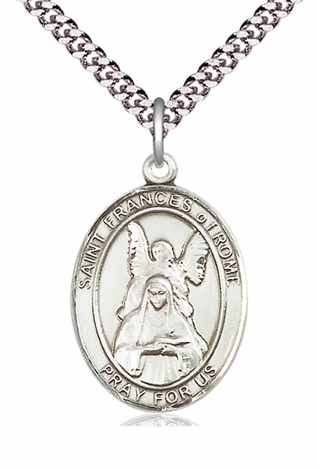 St. Frances of Rome Medal - Pewter / 3/4" x 1/2" (Dime Size) / 18" Rhodium Plated Medium Curb Chain with Clasp (1.7mm) is backordered and will ship as soon as it is back in stock.
