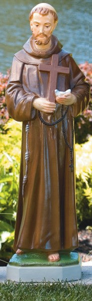 This St. Francis with Cross and Birds statue is ideal for either indoor our outdoor display. Statue dimensions are Height 32", Base 8.5" Square. Weight 59 lbs.