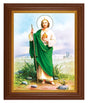With a look and feel of textured canvas, this 8x10 inch artwork print is mounted onto artboard and then framed. The image features a classic image of Saint Jude holding the Christ medallion with flame burning over his head. Framed in a Classic Dark Walnut Finish. Overall dimension with print and frame is 10.5 inches by 12.5 inches.