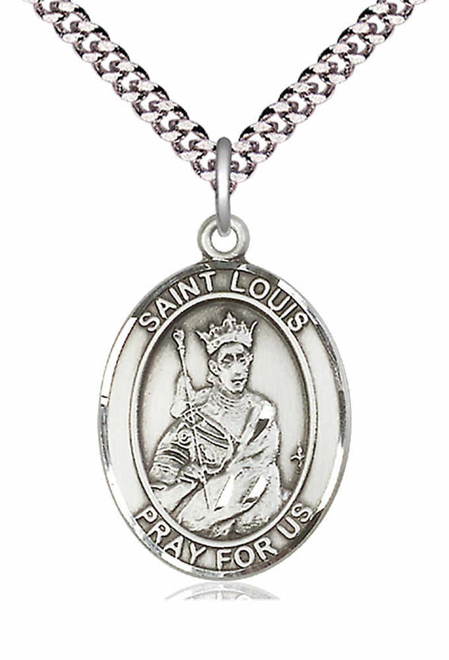 St. Louis Medal - Pewter / 3/4" x 1/2" (Dime Size) / 18" Rhodium Plated Medium Curb Chain with Clasp (1.7mm) is backordered and will ship as soon as it is back in stock.