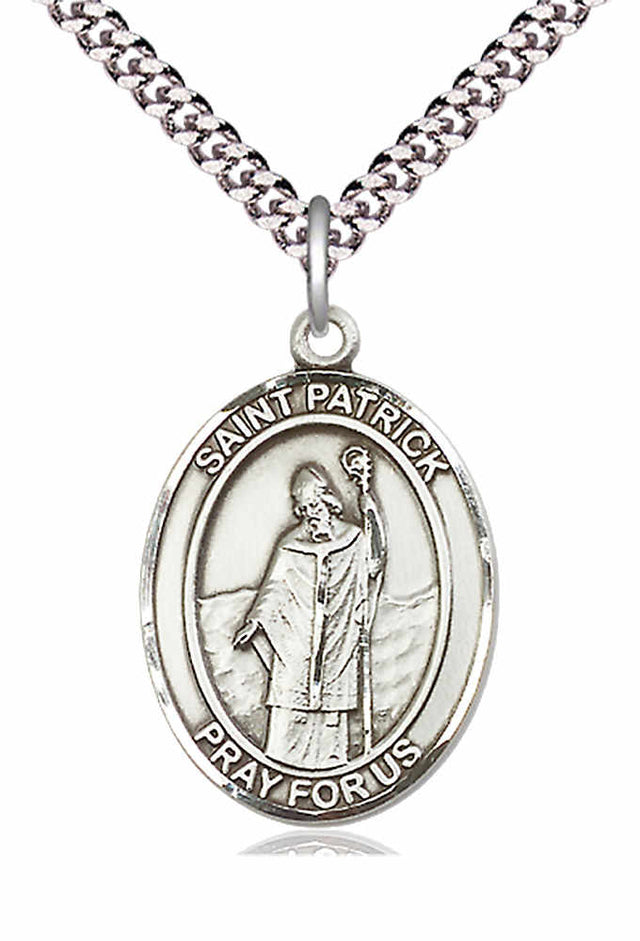 This popular St. Patrick pendant is sure to please. With its classic oval shape and image of St. Patrick in the center it serves as a wonderful reminder of this Saint's life devotion to his faith. We pray to Saint Patrick for his protection and his intercession.