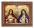 Choose from three frame colors. This 6x8 inch print of the Sacred Heart of Jesus and the Immaculate Heart of May with a heavenly cloud background. The print is placed under protective glass. The frame measures 8.25 inch x 10.25 inch and is available in a finish of either mahogany, gold-leaf, silver-leaf . Display standing with Velvet Easel Back or wall hang. An ideal gift or personal devotional.