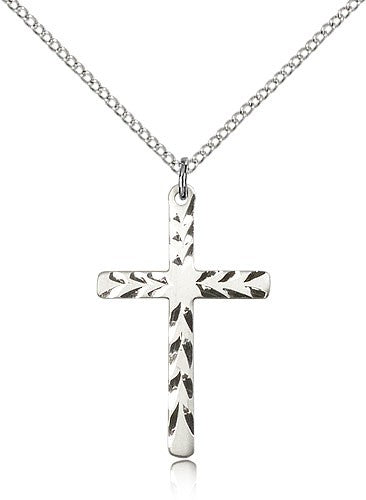 Women's Contemporary Etched Cross Necklace - Sterling Silver / 1 1/8" x 3/4" is backordered and will ship as soon as it is back in stock.