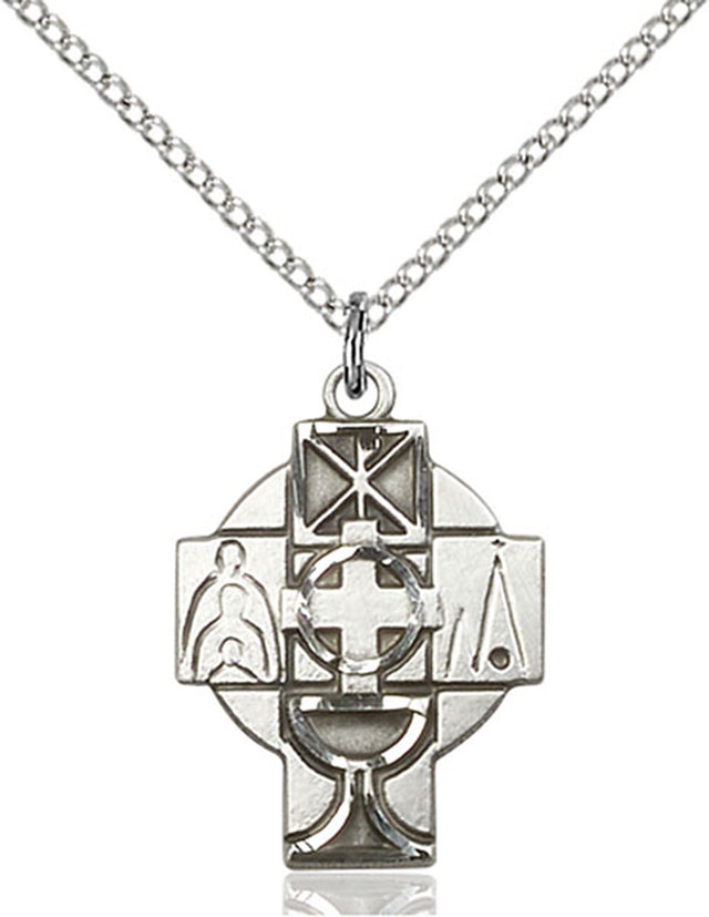 - In the middle is the sign of the cross and Holy Host of Holy Communion.