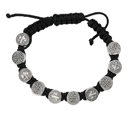 Adjustable Black Corded St. Benedict Bracelet for Women